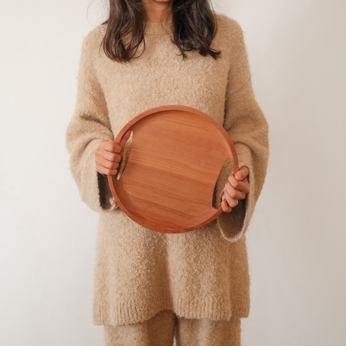 Side-Handled Round Trays - Set of 3 Nested Trays Timeless handmade rounded trays combining natural wood...