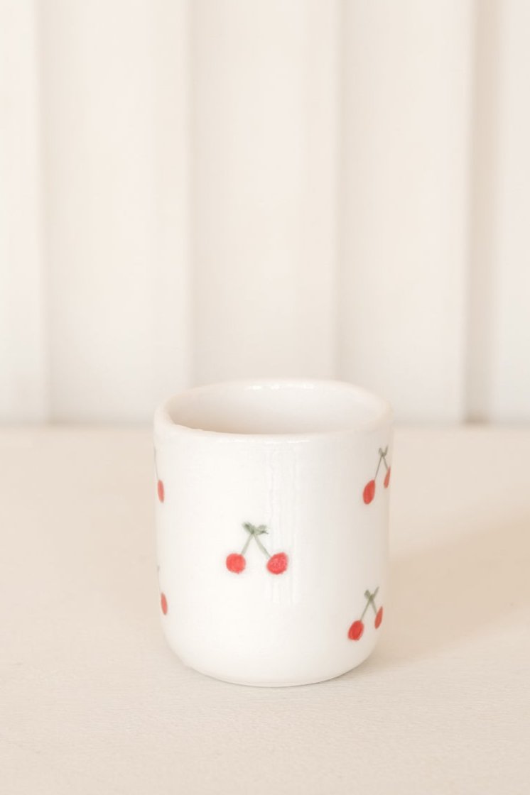Sweet Cherry Espresso Cup Handcrafted pottery espresso cup with a delightful cherry pattern, perfect for...