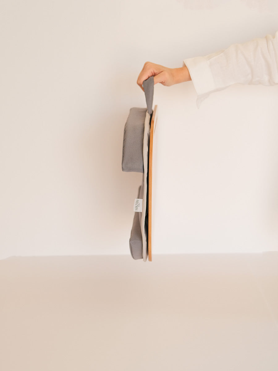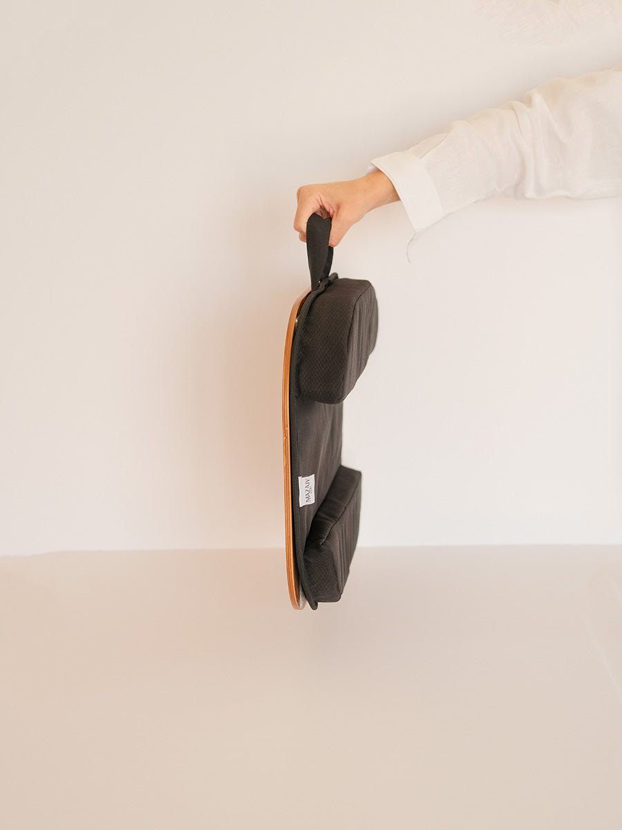 - Smart hollowed base: Cushion tucks over sofa or armchair arms.