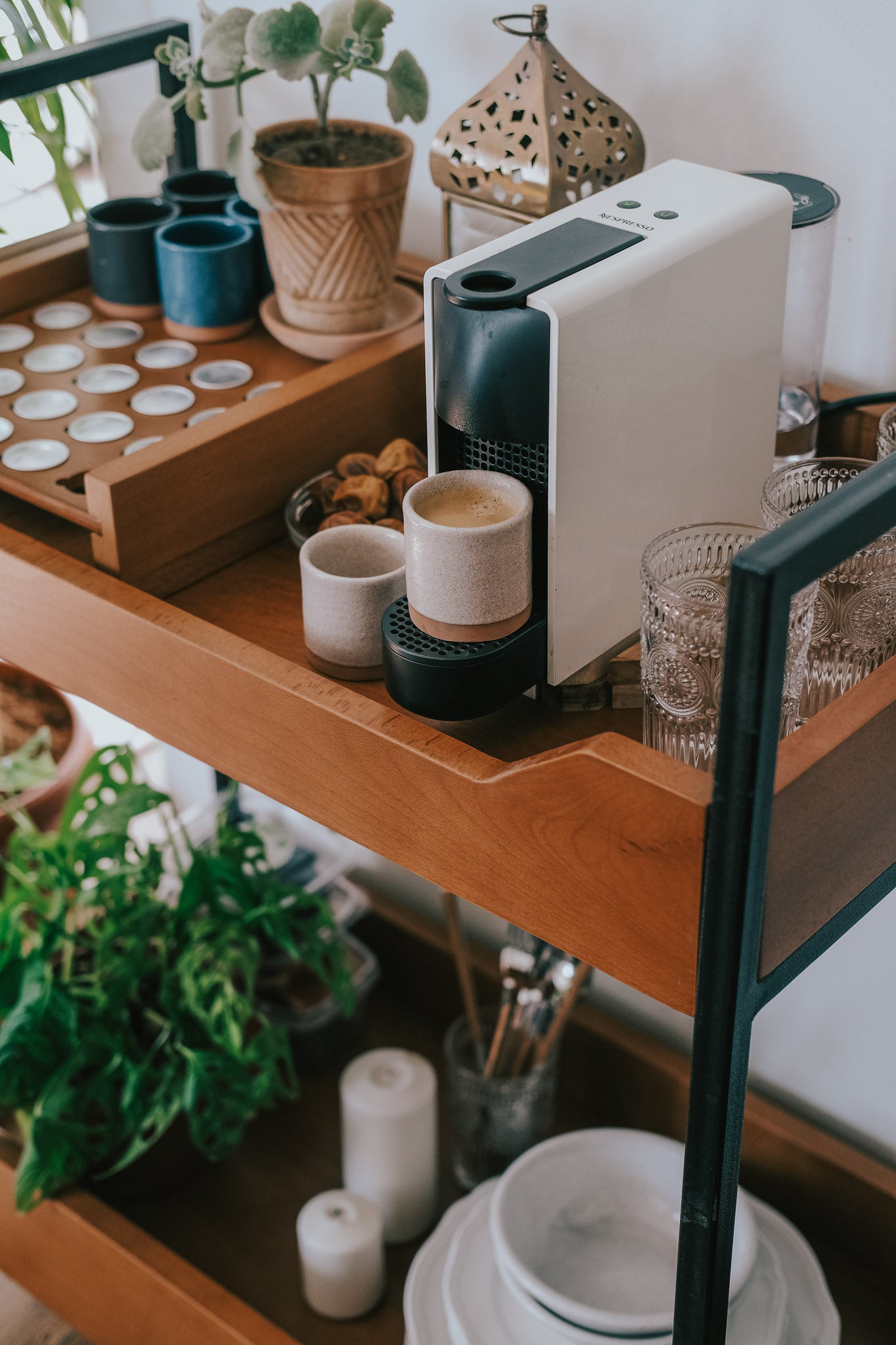 • Transform any corner into your personal coffee haven or serving station with this chic and practical ensemble.